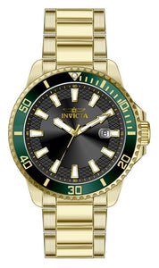 Band Material: Stainless Steel, Band Tone: Gold, Band Width: 22MM, Band Length: 191MM, Crown Type: Push, Case Material: Stainless Steel, Case Tone: Gold, Case Size [mm]: 45, Crystal Type: Flame Fusion, Dial Material: Brass, Dial Color: Black .Purchasing these parts and having a non-authorized repair center open your watch voids all manufacturing warranties. Invicta cannot guarantee the quality standards of an altered timepiece, the standard 3-year limited warranty on Invicta timepieces shall be invalid if the timepiece is serviced at any time by an unauthorized repair center. This includes battery replacements, which must be done at an Invicta authorized repair center in order to maintain the eligibility of the warranty. Please follow the link below to learn more about Invicta's warranty.https://cdn.invictawatch.com/www/files/invicta-warranty-2018.pdf