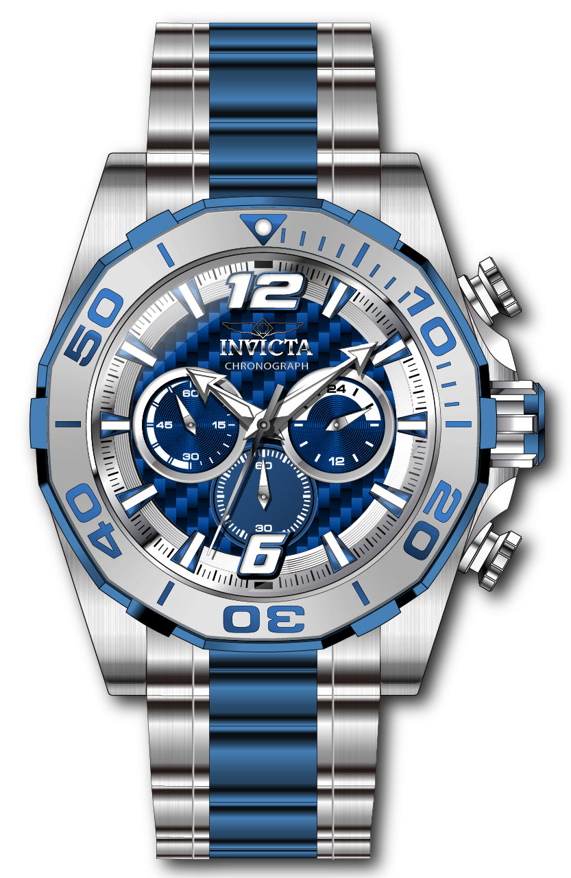 Band Material: Stainless Steel, Band Tone: Steel,Blue, Band Width: 24MM, Band Length: 179MM, Crown Type: Push, Case Material: Stainless Steel, Case Tone: Steel, Case Size [mm]: 48, Case Back: Solid, Material of Hands: Metal, Color of Hands: Silver,Grey, Crystal Type: Flame Fusion, Bezel Material: Stainless Steel, Dial Material: Metal, Dial Color: Blue,Silver .Purchasing these parts and having a non-authorized repair center open your watch voids all manufacturing warranties. Invicta cannot guarantee the quality standards of an altered timepiece, the standard 3-year limited warranty on Invicta timepieces shall be invalid if the timepiece is serviced at any time by an unauthorized repair center. This includes battery replacements, which must be done at an Invicta authorized repair center in order to maintain the eligibility of the warranty. Please follow the link below to learn more about Invicta's warranty.https://cdn.invictawatch.com/www/files/invicta-warranty-2018.pdf