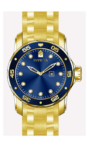 Band Material: Stainless Steel, Band Tone: Gold, Band Width: 26MM, Band Length: 215MM, Crown Type: Push, Case Material: Stainless Steel, Case Tone: Gold, Case Size [mm]: 48, Crystal Type: Flame Fusion, Dial Material: Brass, Dial Color: Blue .Purchasing these parts and having a non-authorized repair center open your watch voids all manufacturing warranties. Invicta cannot guarantee the quality standards of an altered timepiece, the standard 3-year limited warranty on Invicta timepieces shall be invalid if the timepiece is serviced at any time by an unauthorized repair center. This includes battery replacements, which must be done at an Invicta authorized repair center in order to maintain the eligibility of the warranty. Please follow the link below to learn more about Invicta's warranty.https://cdn.invictawatch.com/www/files/invicta-warranty-2018.pdf