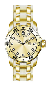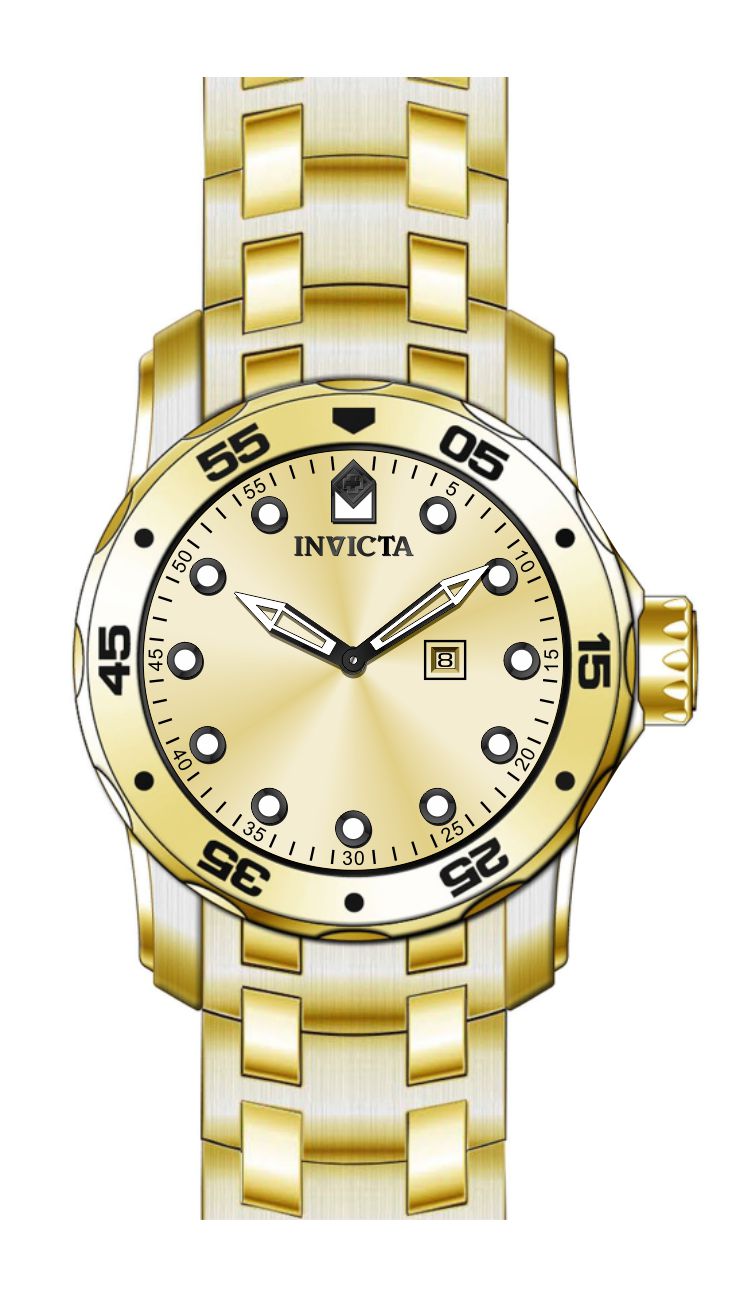 Band Material: Stainless Steel, Band Tone: Gold, Band Width: 26MM, Band Length: 215MM, Crown Type: Push, Case Material: Stainless Steel, Case Tone: Gold, Case Size [mm]: 48, Crystal Type: Flame Fusion, Dial Material: Brass, Dial Color: Gold .Purchasing these parts and having a non-authorized repair center open your watch voids all manufacturing warranties. Invicta cannot guarantee the quality standards of an altered timepiece, the standard 3-year limited warranty on Invicta timepieces shall be invalid if the timepiece is serviced at any time by an unauthorized repair center. This includes battery replacements, which must be done at an Invicta authorized repair center in order to maintain the eligibility of the warranty. Please follow the link below to learn more about Invicta's warranty.https://cdn.invictawatch.com/www/files/invicta-warranty-2018.pdf