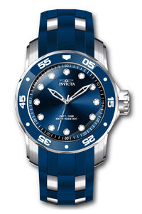 Band Material: Stainless Steel,Silicone, Band Tone: Steel,Blue, Band Width: 26MM, Band Length: 190MM, Crown Type: Push, Case Material: Stainless Steel, Case Tone: Steel, Case Size [mm]: 48, Case Back: Solid, Material of Hands: Metal, Color of Hands: Silver, Crystal Type: Flame Fusion, Bezel Material: Stainless Steel,Aluminum, Dial Material: Metal, Dial Color: Blue .Purchasing these parts and having a non-authorized repair center open your watch voids all manufacturing warranties. Invicta cannot guarantee the quality standards of an altered timepiece, the standard 3-year limited warranty on Invicta timepieces shall be invalid if the timepiece is serviced at any time by an unauthorized repair center. This includes battery replacements, which must be done at an Invicta authorized repair center in order to maintain the eligibility of the warranty. Please follow the link below to learn more about Invicta's warranty.https://cdn.invictawatch.com/www/files/invicta-warranty-2018.pdf