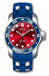 Band Material: Stainless Steel,Silicone, Band Tone: Steel,Blue, Band Width: 26MM, Band Length: 190MM, Crown Type: Push, Case Material: Stainless Steel, Case Tone: Steel, Case Size [mm]: 48, Case Back: Solid, Material of Hands: Metal, Color of Hands: Silver, Crystal Type: Flame Fusion, Bezel Material: Stainless Steel,Aluminum, Dial Material: Metal, Dial Color: Red .Purchasing these parts and having a non-authorized repair center open your watch voids all manufacturing warranties. Invicta cannot guarantee the quality standards of an altered timepiece, the standard 3-year limited warranty on Invicta timepieces shall be invalid if the timepiece is serviced at any time by an unauthorized repair center. This includes battery replacements, which must be done at an Invicta authorized repair center in order to maintain the eligibility of the warranty. Please follow the link below to learn more about Invicta's warranty.https://cdn.invictawatch.com/www/files/invicta-warranty-2018.pdf