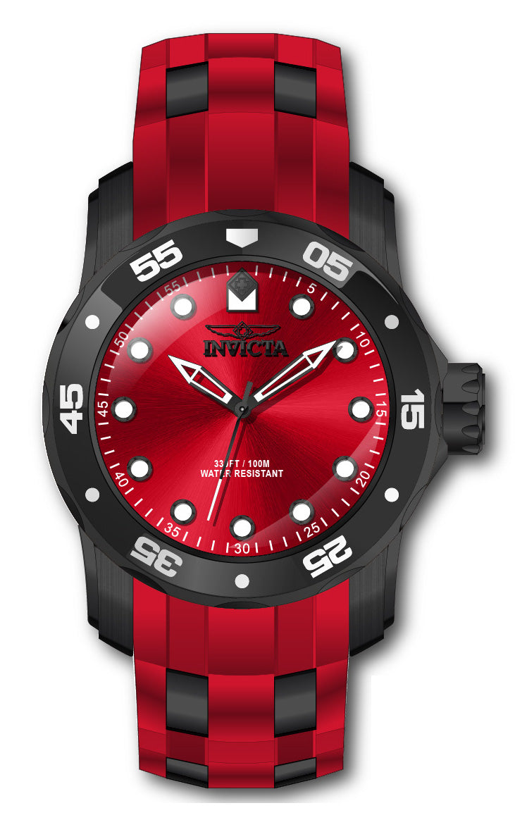 Band Material: Stainless Steel,Silicone, Band Tone: Black,Red, Band Width: 26MM, Band Length: 190MM, Crown Type: Push, Case Material: Stainless Steel, Case Tone: Black, Case Size [mm]: 48, Case Back: Solid, Material of Hands: Metal, Color of Hands: Black, Crystal Type: Flame Fusion, Bezel Material: Stainless Steel,Aluminum, Dial Material: Metal, Dial Color: Red .Purchasing these parts and having a non-authorized repair center open your watch voids all manufacturing warranties. Invicta cannot guarantee the quality standards of an altered timepiece, the standard 3-year limited warranty on Invicta timepieces shall be invalid if the timepiece is serviced at any time by an unauthorized repair center. This includes battery replacements, which must be done at an Invicta authorized repair center in order to maintain the eligibility of the warranty. Please follow the link below to learn more about Invicta's warranty.https://cdn.invictawatch.com/www/files/invicta-warranty-2018.pdf