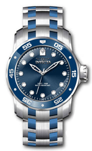 Band Material: Stainless Steel, Band Tone: Steel,Blue, Band Width: 26MM, Band Length: 190MM, Crown Type: Push, Case Material: Stainless Steel, Case Tone: Steel, Case Size [mm]: 48, Case Back: Solid, Material of Hands: Metal, Color of Hands: Silver, Crystal Type: Flame Fusion, Bezel Material: Stainless Steel,Aluminum, Dial Material: Metal, Dial Color: Blue .Purchasing these parts and having a non-authorized repair center open your watch voids all manufacturing warranties. Invicta cannot guarantee the quality standards of an altered timepiece, the standard 3-year limited warranty on Invicta timepieces shall be invalid if the timepiece is serviced at any time by an unauthorized repair center. This includes battery replacements, which must be done at an Invicta authorized repair center in order to maintain the eligibility of the warranty. Please follow the link below to learn more about Invicta's warranty.https://cdn.invictawatch.com/www/files/invicta-warranty-2018.pdf