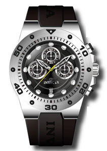 Band Material: Silicone, Band Tone: Black, Band Width: 28MM, Band Length: 210MM, Crown Type: Push, Case Material: Stainless Steel, Case Tone: Steel, Case Size [mm]: 46, Case Back: Solid, Material of Hands: Metal, Color of Hands: Silver,Yellow, Crystal Type: Flame Fusion, Bezel Material: Stainless Steel, Dial Material: Metal, Dial Color: Black .Purchasing these parts and having a non-authorized repair center open your watch voids all manufacturing warranties. Invicta cannot guarantee the quality standards of an altered timepiece, the standard 3-year limited warranty on Invicta timepieces shall be invalid if the timepiece is serviced at any time by an unauthorized repair center. This includes battery replacements, which must be done at an Invicta authorized repair center in order to maintain the eligibility of the warranty. Please follow the link below to learn more about Invicta's warranty.https://cdn.invictawatch.com/www/files/invicta-warranty-2018.pdf