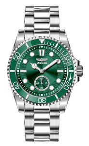 Band Material: Stainless Steel, Band Tone: Steel, Band Width: 22MM, Band Length: 185MM, Crown Type: Screw Down, Case Material: Stainless Steel, Case Tone: Steel, Case Size [mm]: 43, Case Back: Solid, Material of Hands: Brass, Color of Hands: Silver,Luminous, Crystal Type: Mineral, Bezel Material: Stainless Steel,Aluminum, Dial Material: Brass, Dial Color: Green, Dial Pattern: Sun-ray Finish .Purchasing these parts and having a non-authorized repair center open your watch voids all manufacturing warranties. Invicta cannot guarantee the quality standards of an altered timepiece, the standard 3-year limited warranty on Invicta timepieces shall be invalid if the timepiece is serviced at any time by an unauthorized repair center. This includes battery replacements, which must be done at an Invicta authorized repair center in order to maintain the eligibility of the warranty. Please follow the link below to learn more about Invicta's warranty.https://cdn.invictawatch.com/www/files/invicta-warranty-2018.pdf