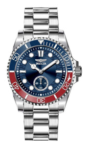 Band Material: Stainless Steel, Band Tone: Steel, Band Width: 22MM, Band Length: 185MM, Crown Type: Screw Down, Case Material: Stainless Steel, Case Tone: Steel, Case Size [mm]: 43, Case Back: Solid, Material of Hands: Brass, Color of Hands: Silver,Luminous, Crystal Type: Mineral, Bezel Material: Stainless Steel,Aluminum, Dial Material: Brass, Dial Color: Blue, Dial Pattern: Sun-ray Finish .Purchasing these parts and having a non-authorized repair center open your watch voids all manufacturing warranties. Invicta cannot guarantee the quality standards of an altered timepiece, the standard 3-year limited warranty on Invicta timepieces shall be invalid if the timepiece is serviced at any time by an unauthorized repair center. This includes battery replacements, which must be done at an Invicta authorized repair center in order to maintain the eligibility of the warranty. Please follow the link below to learn more about Invicta's warranty.https://cdn.invictawatch.com/www/files/invicta-warranty-2018.pdf