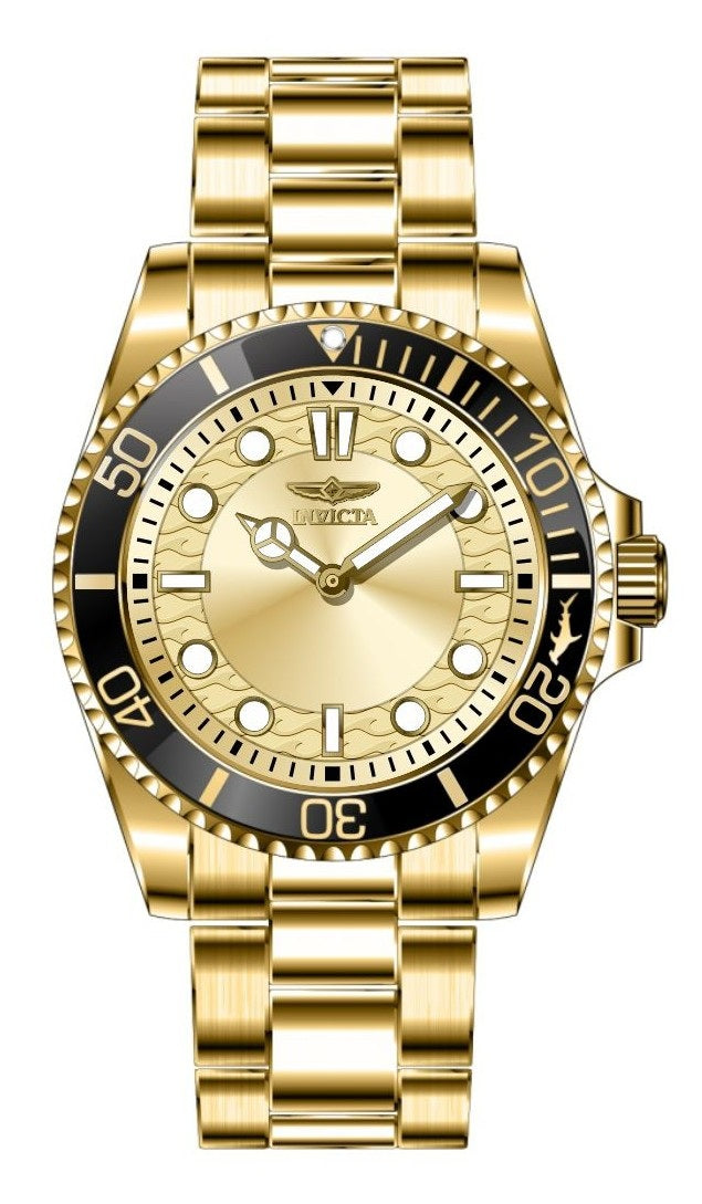 Band Material: Stainless Steel, Band Tone: Gold, Band Width: 22MM, Band Length: 185MM, Crown Type: Screw Down, Case Material: Stainless Steel, Case Tone: Gold, Case Size [mm]: 43, Case Back: Solid, Material of Hands: Brass, Color of Hands: Gold,Luminous, Crystal Type: Mineral, Bezel Material: Stainless Steel,Aluminum, Dial Material: Brass, Dial Color: Gold, Dial Pattern: Sun-ray Finish .Purchasing these parts and having a non-authorized repair center open your watch voids all manufacturing warranties. Invicta cannot guarantee the quality standards of an altered timepiece, the standard 3-year limited warranty on Invicta timepieces shall be invalid if the timepiece is serviced at any time by an unauthorized repair center. This includes battery replacements, which must be done at an Invicta authorized repair center in order to maintain the eligibility of the warranty. Please follow the link below to learn more about Invicta's warranty.https://cdn.invictawatch.com/www/files/invicta-warranty-2018.pdf