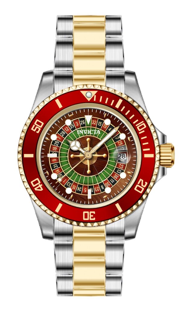 Band Material: Stainless Steel, Band Tone: Steel,Gold, Band Width: 20MM, Band Length: 184MM, Crown Type: Screw Down, Case Material: Stainless Steel, Case Tone: Gold,Steel, Case Size [mm]: 40, Case Back: Solid, Material of Hands: Brass, Color of Hands: Gold,Luminous, Crystal Type: Mineral, Bezel Material: Stainless Steel,Aluminum, Dial Material: Brass, Dial Color: Black,Red,Green, Dial Pattern: Glossy Finish .Purchasing these parts and having a non-authorized repair center open your watch voids all manufacturing warranties. Invicta cannot guarantee the quality standards of an altered timepiece, the standard 3-year limited warranty on Invicta timepieces shall be invalid if the timepiece is serviced at any time by an unauthorized repair center. This includes battery replacements, which must be done at an Invicta authorized repair center in order to maintain the eligibility of the warranty. Please follow the link below to learn more about Invicta's warranty.https://cdn.invictawatch.com/www/files/invicta-warranty-2018.pdf