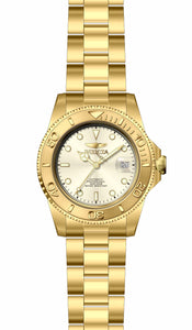 INVICTA Pro Diver Men 43mm Stainless Steel Steel Black dial NH35A Automatic , Band Material: Stainless Steel, Band Tone: Gold, Band Size [mm]: 22, Band Length [mm]: 205, Buckle Type: Fold over safety , Crown Type : Screw Down, Case Material : Stainless Steel, Case Tone : Gold, Case Size (mm) : 43, Case Back : Exhibition, Material of Hands : Metal, Color of Hands : Gold,Luminous, Crystal Type : Mineral, Bezel Material : Stainless Steel, Dial Material : Metal, Dial Color : Champagne, Dial Pattern : Sun-ray Finish .Purchasing these parts and having a non-authorized repair center open your watch voids all manufacturing warranties. Invicta cannot guarantee the quality standards of an altered timepiece, the standard 3-year limited warranty on Invicta timepieces shall be invalid if the timepiece is serviced at any time by an unauthorized repair center. This includes battery replacements, which must be done at an Invicta authorized repair center in order to maintain the eligibility of the warranty. Please follow the link below to learn more about Invicta's warranty.https://cdn.invictawatch.com/www/files/invicta-warranty-2018.pdf