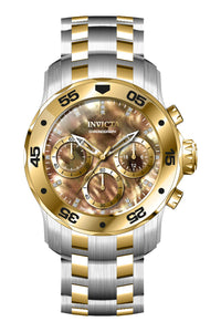 INVICTA Pro Diver Lady 38mm Stainless Steel Steel Brown dial VD54 Quartz , Band Material: Stainless Steel, Band Tone: Steel,Gold, Band Size [mm]: 20, Band Length [mm]: 185, Buckle Type: Fold over safety , Crown Type : Push, Case Material : Stainless Steel, Case Tone : Steel, Case Size (mm) : 38, Case Back : Solid, Material of Hands : Metal, Color of Hands : White,Gold, Crystal Type : Flame Fusion, Bezel Material : Stainless Steel,Aluminum, Dial Material : Abalone, Dial Color : Brown, Dial Pattern : None .Purchasing these parts and having a non-authorized repair center open your watch voids all manufacturing warranties. Invicta cannot guarantee the quality standards of an altered timepiece, the standard 3-year limited warranty on Invicta timepieces shall be invalid if the timepiece is serviced at any time by an unauthorized repair center. This includes battery replacements, which must be done at an Invicta authorized repair center in order to maintain the eligibility of the warranty. Please follow the link below to learn more about Invicta's warranty.https://cdn.invictawatch.com/www/files/invicta-warranty-2018.pdf