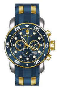 Band Material: Stainless Steel,Silicone, Band Tone: Gold,Blue, Band Width: 26MM, Band Length: 200MM, Crown Type: Push, Case Material: Stainless Steel, Case Tone: Steel, Case Size [mm]: 48, Case Back: Solid, Material of Hands: Metal, Color of Hands: Gold, Crystal Type: Flame Fusion, Bezel Material: Stainless Steel,Aluminum, Dial Material: Metal, Dial Color: Blue, Dial Pattern: Sun-ray Finish .Purchasing these parts and having a non-authorized repair center open your watch voids all manufacturing warranties. Invicta cannot guarantee the quality standards of an altered timepiece, the standard 3-year limited warranty on Invicta timepieces shall be invalid if the timepiece is serviced at any time by an unauthorized repair center. This includes battery replacements, which must be done at an Invicta authorized repair center in order to maintain the eligibility of the warranty. Please follow the link below to learn more about Invicta's warranty.https://cdn.invictawatch.com/www/files/invicta-warranty-2018.pdf