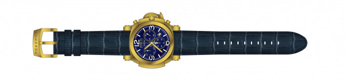 Band for Invicta Reserve 23574, Band Material: Leather, Band Color: Blue, Band Size (in mm): 26, Band Length (in mm): 210, Buckle Type: Regular, Clasp Type: Regular. Please note that bands do not ship with spring bars or T bars. If you need these parts, please add them to your cart with the corresponding part sku.
