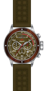 Band Material: Leather, Band Tone: Olive Green, Band Width: 24MM, Band Length: 210MM, Crown Type: Push, Case Material: Stainless Steel,Wood, Case Tone: Brown,Steel, Case Size [mm]: 49.0, Case Back: Solid screwed, Material of Hands: Metal, Color of Hands: Red,Luminous,Gunmetal, Crystal Type: Mineral, Bezel Material: Stainless Steel,Wood, Dial Material: Metal, Dial Color: Olive Green, Dial Pattern: Sun-ray Finish .Purchasing these parts and having a non-authorized repair center open your watch voids all manufacturing warranties. Invicta cannot guarantee the quality standards of an altered timepiece, the standard 3-year limited warranty on Invicta timepieces shall be invalid if the timepiece is serviced at any time by an unauthorized repair center. This includes battery replacements, which must be done at an Invicta authorized repair center in order to maintain the eligibility of the warranty. Please follow the link below to learn more about Invicta's warranty.https://cdn.invictawatch.com/www/files/invicta-warranty-2018.pdf