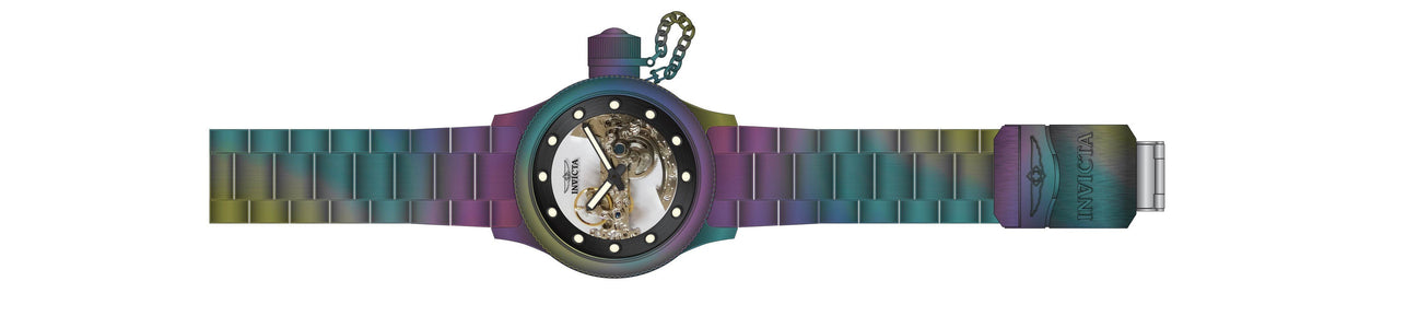 Individual Spare PARTS For Invicta Russian Diver 26273, Band Material: Stainless Steel, Band Tone: Rainbow Plating, Iridescent, Band Size in mm: 26, Band length in mm: 210, Buckle Type: Diver, Clasp Type: Deployment, Safety, Crown Type Push, Case Material Stainless Steel, Case Tone Iridescent, Case Size (mm) 52, Case Back Exhibition, Material of Hands Metal, Color of Hands Luminous, Gunmetal, Crystal Type Mineral, Bezel Material Stainless Steel, Dial Material Metal, Dial Color Black, Dial Pattern 0Purchasing these parts and having a non-authorized repair center open your watch voids all manufacturing warranties. Invicta cannot guarantee the quality standards of an altered timepiece, the standard 3-year limited warranty on Invicta timepieces shall be invalid if the timepiece is serviced at any time by an unauthorized repair center. This includes battery replacements, which must be done at an Invicta authorized repair center in order to maintain the eligibility of the warranty. Please follow the link below to learn more about Invicta's warranty.https://cdn.invictawatch.com/www/files/invicta-warranty-2018.pdf