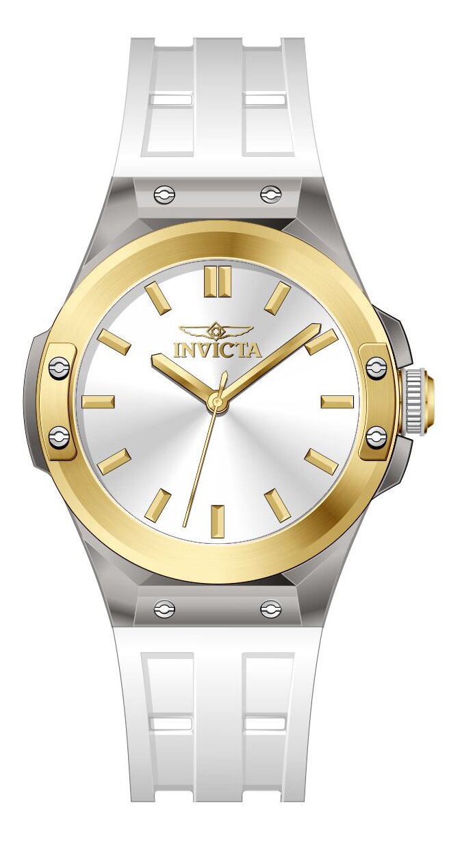 Band Material: Silicone, Band Tone: White, Band Width: 26MM, Band Length: 220MM, Crown Type: Push, Case Material: Plastic, Case Tone: Transparent, Case Size [mm]: 45, Case Back: Solid, Material of Hands: Aluminum, Color of Hands: Gold, Crystal Type: Mineral, Bezel Material: Stainless Steel, Dial Material: Brass, Dial Color: Silver, Dial Pattern: Sun-ray Finish .Purchasing these parts and having a non-authorized repair center open your watch voids all manufacturing warranties. Invicta cannot guarantee the quality standards of an altered timepiece, the standard 3-year limited warranty on Invicta timepieces shall be invalid if the timepiece is serviced at any time by an unauthorized repair center. This includes battery replacements, which must be done at an Invicta authorized repair center in order to maintain the eligibility of the warranty. Please follow the link below to learn more about Invicta's warranty.https://cdn.invictawatch.com/www/files/invicta-warranty-2018.pdf