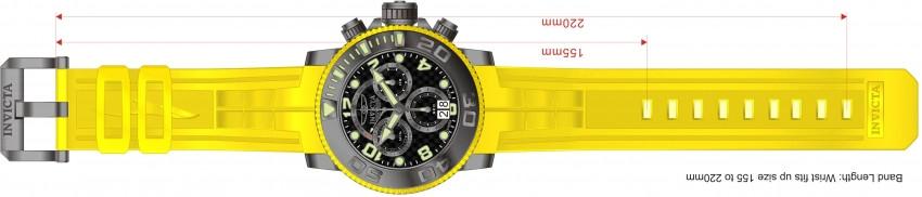 Individual Spare PARTS For Men Invicta Sea Hunter 80348, Band Material Polyurethane, Band Color Yellow, Band Width 26 MM, Band Length 220 MM, Buckle Type Regular, Clasp Type Regular, Crown Type Screw Down, Case Material Stainless Steel, Case Tone Gunmetal, Case Size (mm) 50, Case Back Solid, Material of Hands Metal, Color of Hands Luminous, Gunmetal, Crystal Type Flame Fusion, Bezel Material Polyurethane, Dial Material Carbon Fiber, Dial Color Black, Dial Pattern NonePurchasing these parts and having a non-authorized repair center open your watch voids all manufacturing warranties. Invicta cannot guarantee the quality standards of an altered timepiece, the standard 3-year limited warranty on Invicta timepieces shall be invalid if the timepiece is serviced at any time by an unauthorized repair center. This includes battery replacements, which must be done at an Invicta authorized repair center in order to maintain the eligibility of the warranty. Please follow the link below to learn more about Invicta's warranty.https://cdn.invictawatch.com/www/files/invicta-warranty-2018.pdf