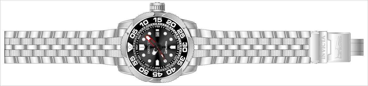INVICTA Sea Hunter Men 58mm Stainless Steel Black + Steel Black dial NH35A Automatic , Band Material: Stainless Steel, Band Tone: Steel, Band Size [mm]: 30, Band Length [mm]: 230, Buckle Type: Fold over safety , Crown Type : Push, Case Material : Stainless Steel, Case Tone : Black,Steel, Case Size (mm) : 58, Case Back : Solid, Material of Hands : Metal, Color of Hands : Black,White,Red,Luminous, Crystal Type : Flame Fusion, Bezel Material : Stainless Steel, Dial Material : Metal, Dial Color : Black, Dial Pattern : Sun-ray Finish .Purchasing these parts and having a non-authorized repair center open your watch voids all manufacturing warranties. Invicta cannot guarantee the quality standards of an altered timepiece, the standard 3-year limited warranty on Invicta timepieces shall be invalid if the timepiece is serviced at any time by an unauthorized repair center. This includes battery replacements, which must be done at an Invicta authorized repair center in order to maintain the eligibility of the warranty. Please follow the link below to learn more about Invicta's warranty.https://cdn.invictawatch.com/www/files/invicta-warranty-2018.pdf