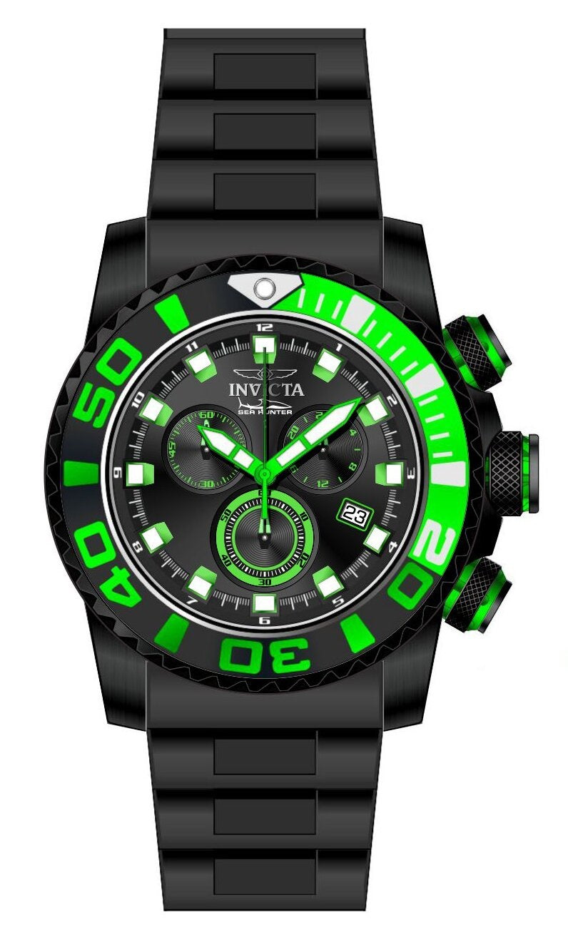 Band Material: Silicone, Band Tone: Black, Band Width: 28MM, Band Length: 220MM, Crown Type: Screw Down, Case Material: Stainless Steel, Case Tone: Black, Case Size [mm]: 52, Case Back: Solid, Material of Hands: Brass, Color of Hands: Black,Green,Luminous, Crystal Type: Mineral, Bezel Material: Stainless Steel,Aluminum,Luminous, Dial Material: Brass, Dial Color: Black, Dial Pattern: Sun-ray Finish .Purchasing these parts and having a non-authorized repair center open your watch voids all manufacturing warranties. Invicta cannot guarantee the quality standards of an altered timepiece, the standard 3-year limited warranty on Invicta timepieces shall be invalid if the timepiece is serviced at any time by an unauthorized repair center. This includes battery replacements, which must be done at an Invicta authorized repair center in order to maintain the eligibility of the warranty. Please follow the link below to learn more about Invicta's warranty.https://cdn.invictawatch.com/www/files/invicta-warranty-2018.pdf