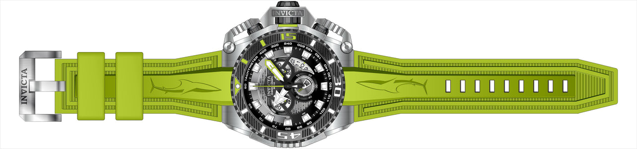 Band Material: Silicone, Band Tone: Green, Band Width: 34MM, Band Length: 225MM, Crown Type: Push, Case Material: Stainless Steel, Case Tone: Gunmetal,Steel, Case Size [mm]: 57, Case Back: Solid, Material of Hands: Metal, Color of Hands: Black,White,Green,Luminous, Crystal Type: Flame Fusion, Bezel Material: Stainless Steel, Dial Material: Metal, Dial Color: Black,Gunmetal, Dial Pattern: Double Layered Design .Purchasing these parts and having a non-authorized repair center open your watch voids all manufacturing warranties. Invicta cannot guarantee the quality standards of an altered timepiece, the standard 3-year limited warranty on Invicta timepieces shall be invalid if the timepiece is serviced at any time by an unauthorized repair center. This includes battery replacements, which must be done at an Invicta authorized repair center in order to maintain the eligibility of the warranty. Please follow the link below to learn more about Invicta's warranty.https://cdn.invictawatch.com/www/files/invicta-warranty-2018.pdf