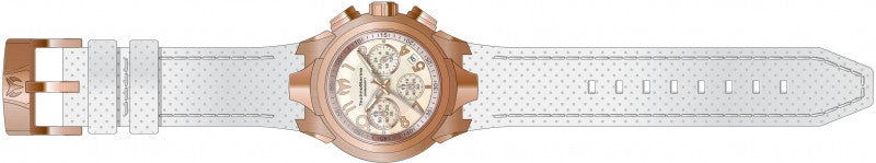 Band Material: Leather, Band Tone: White, Band Size: 25mm, Band Length: 185mm, Clasp Type: Regular, Clasp Tone: Rose Gold Please note that bands do not ship with spring bars or T bars. If you need these parts, please add them to your cart with the corresponding part sku.