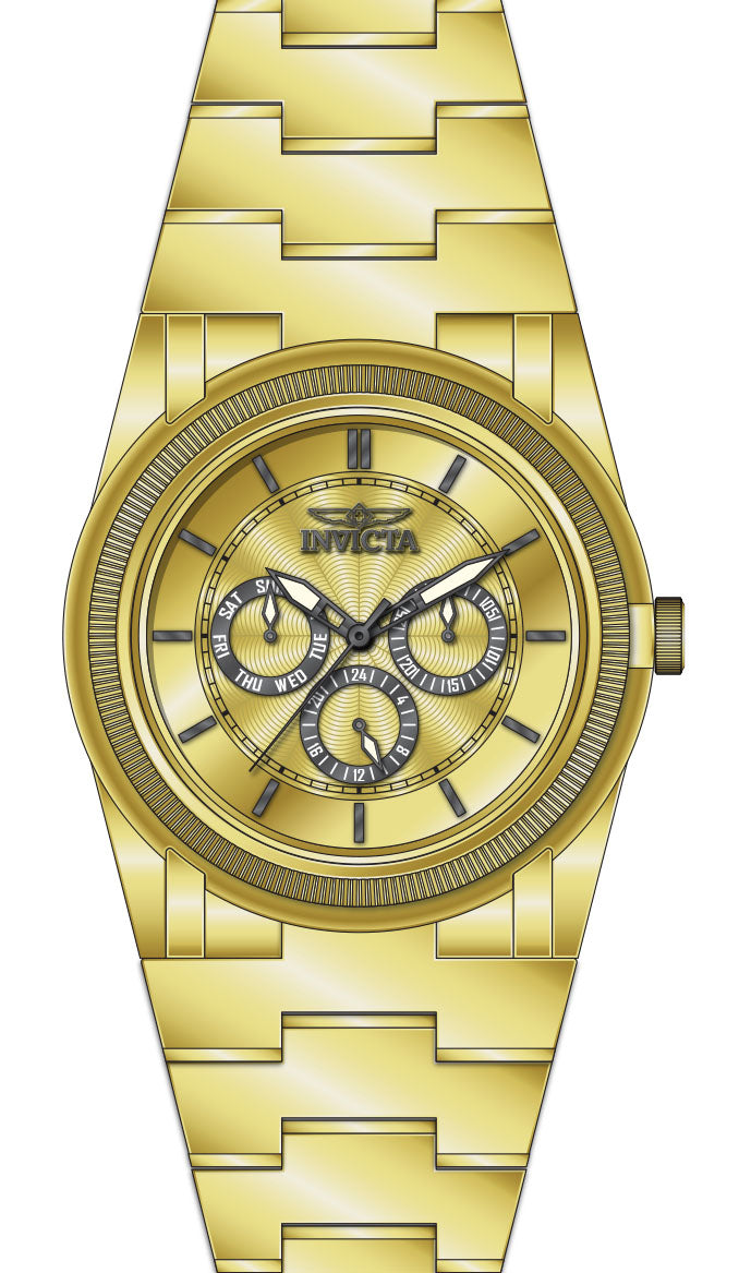 Band Material: Stainless Steel, Band Tone: Gold, Band Width: 33MM, Band Length: 200MM, Buckle Type: Fold over safety, Clasp Type: Safety,Deployment, Please note that bands do not ship with spring bars or T bars. If you need these parts, please add them to your cart with the corresponding part sku.