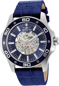 Individual Spare PARTS For Men Invicta Specialty 17259, Band Material Leather, Band Color Blue, Band Width 24 MM, Band Length 225 MM, Buckle Type Regular, Clasp Type Regular, Crown Type Push, Case Material Stainless Steel, Case Tone Steel, Case Size (mm) 45, Case Back Exhibition, Material of Hands Metal, Color of Hands Silver, Crystal Type Flame Fusion, Bezel Material Stainless Steel, Dial Material Metal, Dial Color Blue, Dial Pattern None