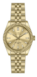Band Material: Stainless Steel, Band Tone: Gold, Band Width: 18MM, Band Length: 166MM, Crown Type: Push, Case Material: Stainless Steel, Case Tone: Gold, Case Size [mm]: 36, Crystal Type: Mineral, Dial Material: Brass, Dial Color: Gold .Purchasing these parts and having a non-authorized repair center open your watch voids all manufacturing warranties. Invicta cannot guarantee the quality standards of an altered timepiece, the standard 3-year limited warranty on Invicta timepieces shall be invalid if the timepiece is serviced at any time by an unauthorized repair center. This includes battery replacements, which must be done at an Invicta authorized repair center in order to maintain the eligibility of the warranty. Please follow the link below to learn more about Invicta's warranty.https://cdn.invictawatch.com/www/files/invicta-warranty-2018.pdf