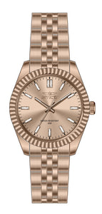 Band Material: Stainless Steel, Band Tone: Rose Gold, Band Width: 18MM, Band Length: 166MM, Crown Type: Push, Case Material: Stainless Steel, Case Tone: Rose Gold, Case Size [mm]: 36, Crystal Type: Mineral, Dial Material: Brass, Dial Color: Rose Gold .Purchasing these parts and having a non-authorized repair center open your watch voids all manufacturing warranties. Invicta cannot guarantee the quality standards of an altered timepiece, the standard 3-year limited warranty on Invicta timepieces shall be invalid if the timepiece is serviced at any time by an unauthorized repair center. This includes battery replacements, which must be done at an Invicta authorized repair center in order to maintain the eligibility of the warranty. Please follow the link below to learn more about Invicta's warranty.https://cdn.invictawatch.com/www/files/invicta-warranty-2018.pdf