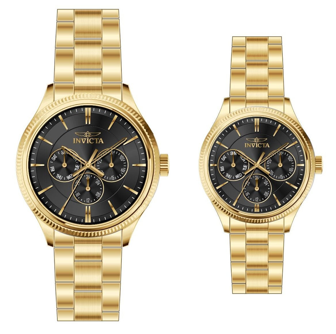 Band Material: Stainless Steel, Band Tone: Gold, Band Width: 20,16MM, Band Length: 179,174MM, Crown Type: Push, Case Material: Stainless Steel, Case Tone: Gold, Case Size [mm]: 42,34, Case Back: Solid, Material of Hands: Brass, Color of Hands: Gold, Crystal Type: Mineral, Bezel Material: None, Dial Material: Brass, Dial Color: Black, Dial Pattern: Sun-ray Finish .Purchasing these parts and having a non-authorized repair center open your watch voids all manufacturing warranties. Invicta cannot guarantee the quality standards of an altered timepiece, the standard 3-year limited warranty on Invicta timepieces shall be invalid if the timepiece is serviced at any time by an unauthorized repair center. This includes battery replacements, which must be done at an Invicta authorized repair center in order to maintain the eligibility of the warranty. Please follow the link below to learn more about Invicta's warranty.https://cdn.invictawatch.com/www/files/invicta-warranty-2018.pdf
