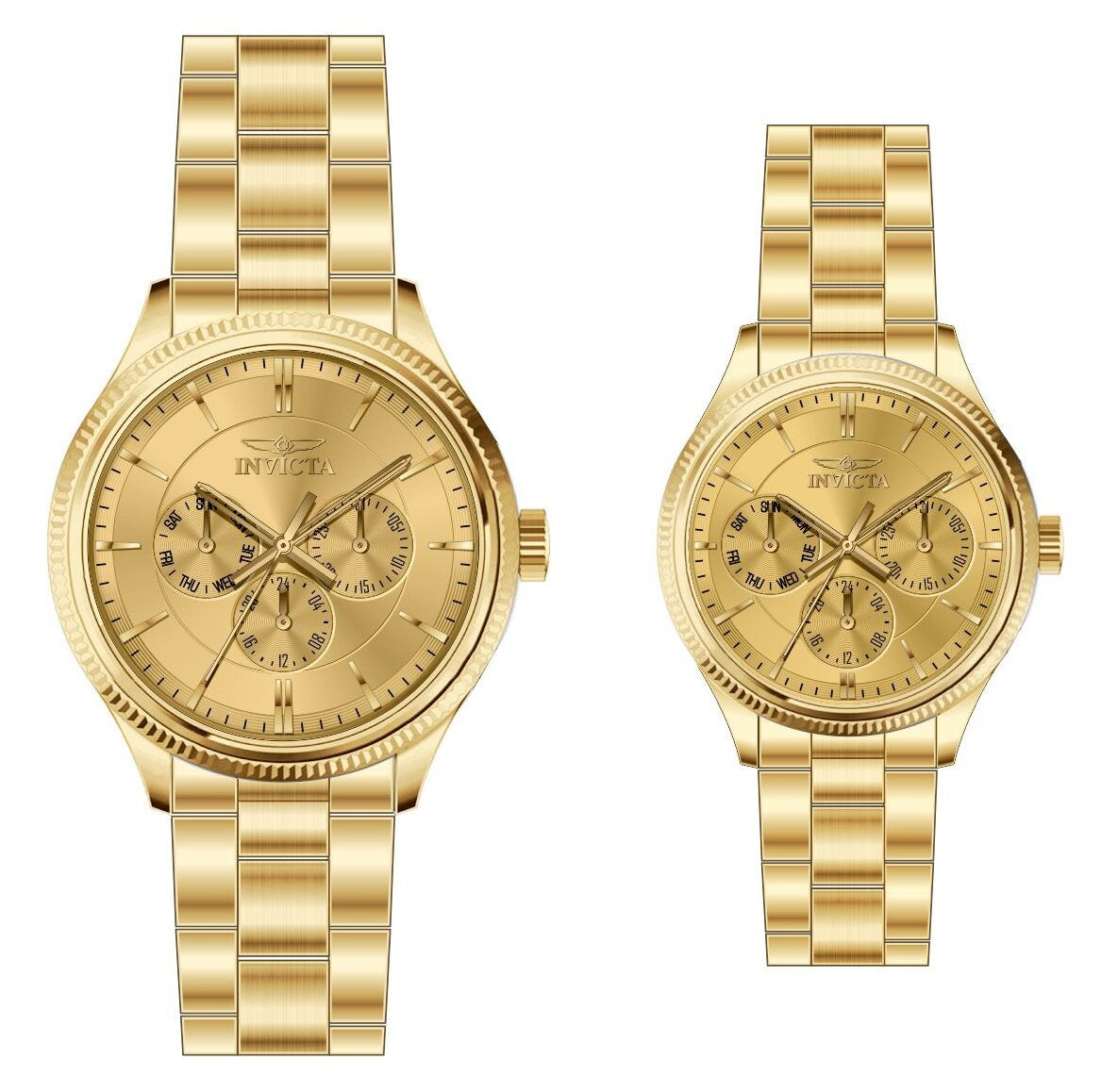 Band Material: Stainless Steel, Band Tone: Gold, Band Width: 20,16MM, Band Length: 179,174MM, Crown Type: Push, Case Material: Stainless Steel, Case Tone: Gold, Case Size [mm]: 42,34, Case Back: Solid, Material of Hands: Brass, Color of Hands: Gold, Crystal Type: Mineral, Bezel Material: None, Dial Material: Brass, Dial Color: Gold, Dial Pattern: Sun-ray Finish .Purchasing these parts and having a non-authorized repair center open your watch voids all manufacturing warranties. Invicta cannot guarantee the quality standards of an altered timepiece, the standard 3-year limited warranty on Invicta timepieces shall be invalid if the timepiece is serviced at any time by an unauthorized repair center. This includes battery replacements, which must be done at an Invicta authorized repair center in order to maintain the eligibility of the warranty. Please follow the link below to learn more about Invicta's warranty.https://cdn.invictawatch.com/www/files/invicta-warranty-2018.pdf