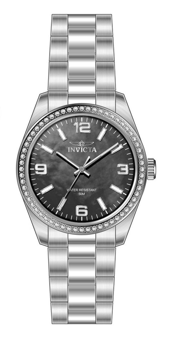 Band Material: Stainless Steel, Band Tone: Steel, Band Width: 20MM, Band Length: 165MM, Crown Type: Push, Case Material: Stainless Steel, Case Tone: Steel, Case Size [mm]: 38, Case Back: Solid, Material of Hands: Brass, Color of Hands: Silver,Luminous, Crystal Type: Mineral, Bezel Material: Crystal, Dial Material: Mother of Pearl, Dial Color: Black, Dial Pattern: None .Purchasing these parts and having a non-authorized repair center open your watch voids all manufacturing warranties. Invicta cannot guarantee the quality standards of an altered timepiece, the standard 3-year limited warranty on Invicta timepieces shall be invalid if the timepiece is serviced at any time by an unauthorized repair center. This includes battery replacements, which must be done at an Invicta authorized repair center in order to maintain the eligibility of the warranty. Please follow the link below to learn more about Invicta's warranty.https://cdn.invictawatch.com/www/files/invicta-warranty-2018.pdf