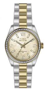 Band Material: Stainless Steel, Band Tone: Steel,Gold, Band Width: 20MM, Band Length: 165MM, Crown Type: Push, Case Material: Stainless Steel, Case Tone: Gold,Steel, Case Size [mm]: 38, Case Back: Solid, Material of Hands: Brass, Color of Hands: Gold,Luminous, Crystal Type: Mineral, Bezel Material: Crystal, Dial Material: Mother of Pearl, Dial Color: Gold, Dial Pattern: None .Purchasing these parts and having a non-authorized repair center open your watch voids all manufacturing warranties. Invicta cannot guarantee the quality standards of an altered timepiece, the standard 3-year limited warranty on Invicta timepieces shall be invalid if the timepiece is serviced at any time by an unauthorized repair center. This includes battery replacements, which must be done at an Invicta authorized repair center in order to maintain the eligibility of the warranty. Please follow the link below to learn more about Invicta's warranty.https://cdn.invictawatch.com/www/files/invicta-warranty-2018.pdf