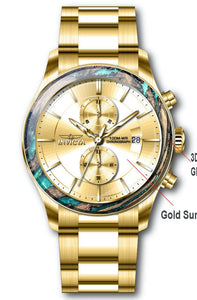 INVICTA Specialty Men 46mm Stainless Steel Gold Gold dial VD51 Quartz , Band Material: Stainless Steel, Band Tone: Gold, Band Size [mm]: 24, Band Length [mm]: 185, Buckle Type: Fold over safety , Crown Type : Push, Case Material : Stainless Steel, Case Tone : Gold, Case Size (mm) : 46, Case Back : Solid, Material of Hands : Metal, Color of Hands : Gold, Crystal Type : Flame Fusion, Bezel Material : Stainless Steel,Glass, Dial Material : Metal, Dial Color : Gold, Dial Pattern : Sun-ray Finish .Purchasing these parts and having a non-authorized repair center open your watch voids all manufacturing warranties. Invicta cannot guarantee the quality standards of an altered timepiece, the standard 3-year limited warranty on Invicta timepieces shall be invalid if the timepiece is serviced at any time by an unauthorized repair center. This includes battery replacements, which must be done at an Invicta authorized repair center in order to maintain the eligibility of the warranty. Please follow the link below to learn more about Invicta's warranty.https://cdn.invictawatch.com/www/files/invicta-warranty-2018.pdf