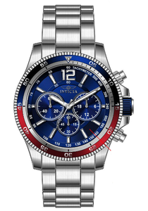 INVICTA Specialty Men 45mm Stainless Steel Silver Blue dial VD54 Quartz , Band Material: Stainless Steel, Band Tone: Steel, Band Size [mm]: 22, Band Length [mm]: 182.5, Buckle Type: Fold over safety , Crown Type : Push, Case Material : Stainless Steel, Case Tone : Silver, Case Size (mm) : 45, Case Back : Solid, Material of Hands : Metal, Color of Hands : Silver, Crystal Type : Flame Fusion, Bezel Material : Stainless Steel, Dial Material : Metal, Dial Color : Blue, Dial Pattern : None .Purchasing these parts and having a non-authorized repair center open your watch voids all manufacturing warranties. Invicta cannot guarantee the quality standards of an altered timepiece, the standard 3-year limited warranty on Invicta timepieces shall be invalid if the timepiece is serviced at any time by an unauthorized repair center. This includes battery replacements, which must be done at an Invicta authorized repair center in order to maintain the eligibility of the warranty. Please follow the link below to learn more about Invicta's warranty.https://cdn.invictawatch.com/www/files/invicta-warranty-2018.pdf
