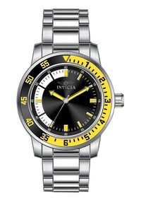 INVICTA Specialty Men 45mm Stainless Steel Steel Black dial PC21 Quartz , Band Material: Stainless Steel, Band Tone: Steel, Band Size [mm]: 22, Band Length [mm]: 190, Buckle Type: Fold over safety , Crown Type : Push, Case Material : Stainless Steel, Case Tone : Steel, Case Size (mm) : 45, Case Back : Solid, Material of Hands : Metal, Color of Hands : Yellow, Crystal Type : Flame Fusion, Bezel Material : Stainless Steel, Dial Material : Metal, Dial Color : Black, Dial Pattern : Sun-ray Finish .Purchasing these parts and having a non-authorized repair center open your watch voids all manufacturing warranties. Invicta cannot guarantee the quality standards of an altered timepiece, the standard 3-year limited warranty on Invicta timepieces shall be invalid if the timepiece is serviced at any time by an unauthorized repair center. This includes battery replacements, which must be done at an Invicta authorized repair center in order to maintain the eligibility of the warranty. Please follow the link below to learn more about Invicta's warranty.https://cdn.invictawatch.com/www/files/invicta-warranty-2018.pdf