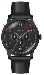 Band Material: Leather, Band Tone: Black, Band Width: 22MM, Band Length: 200MM, Crown Type: Push, Case Material: Stainless Steel, Case Tone: Black, Case Size [mm]: 44, Case Back: Solid, Material of Hands: Metal, Color of Hands: Silver,Grey, Crystal Type: Flame Fusion, Bezel Material: Stainless Steel, Dial Material: Metal, Dial Color: Black, Dial Pattern: Matte Finish .Purchasing these parts and having a non-authorized repair center open your watch voids all manufacturing warranties. Invicta cannot guarantee the quality standards of an altered timepiece, the standard 3-year limited warranty on Invicta timepieces shall be invalid if the timepiece is serviced at any time by an unauthorized repair center. This includes battery replacements, which must be done at an Invicta authorized repair center in order to maintain the eligibility of the warranty. Please follow the link below to learn more about Invicta's warranty.https://cdn.invictawatch.com/www/files/invicta-warranty-2018.pdf