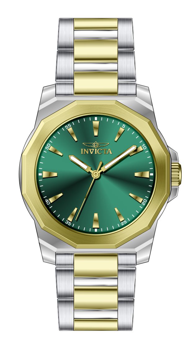 Band Material: Stainless Steel, Band Tone: Steel,Gold, Band Width: 22MM, Band Length: 186MM, Crown Type: Push, Case Material: Stainless Steel, Case Tone: Steel, Case Size [mm]: 42, Crystal Type: Flame Fusion, Dial Material: Brass, Dial Color: Green .Purchasing these parts and having a non-authorized repair center open your watch voids all manufacturing warranties. Invicta cannot guarantee the quality standards of an altered timepiece, the standard 3-year limited warranty on Invicta timepieces shall be invalid if the timepiece is serviced at any time by an unauthorized repair center. This includes battery replacements, which must be done at an Invicta authorized repair center in order to maintain the eligibility of the warranty. Please follow the link below to learn more about Invicta's warranty.https://cdn.invictawatch.com/www/files/invicta-warranty-2018.pdf