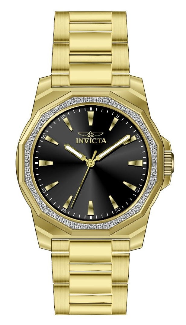 Band Material: Stainless Steel, Band Tone: Gold, Band Width: 22MM, Band Length: 180MM, Crown Type: Push, Case Material: Stainless Steel, Case Tone: Gold, Case Size [mm]: 42, Case Back: Solid, Material of Hands: Brass, Color of Hands: Gold,Luminous, Crystal Type: Mineral, Bezel Material: Crystal, Dial Material: Brass, Dial Color: Black, Dial Pattern: Sun-ray Finish .Purchasing these parts and having a non-authorized repair center open your watch voids all manufacturing warranties. Invicta cannot guarantee the quality standards of an altered timepiece, the standard 3-year limited warranty on Invicta timepieces shall be invalid if the timepiece is serviced at any time by an unauthorized repair center. This includes battery replacements, which must be done at an Invicta authorized repair center in order to maintain the eligibility of the warranty. Please follow the link below to learn more about Invicta's warranty.https://cdn.invictawatch.com/www/files/invicta-warranty-2018.pdf