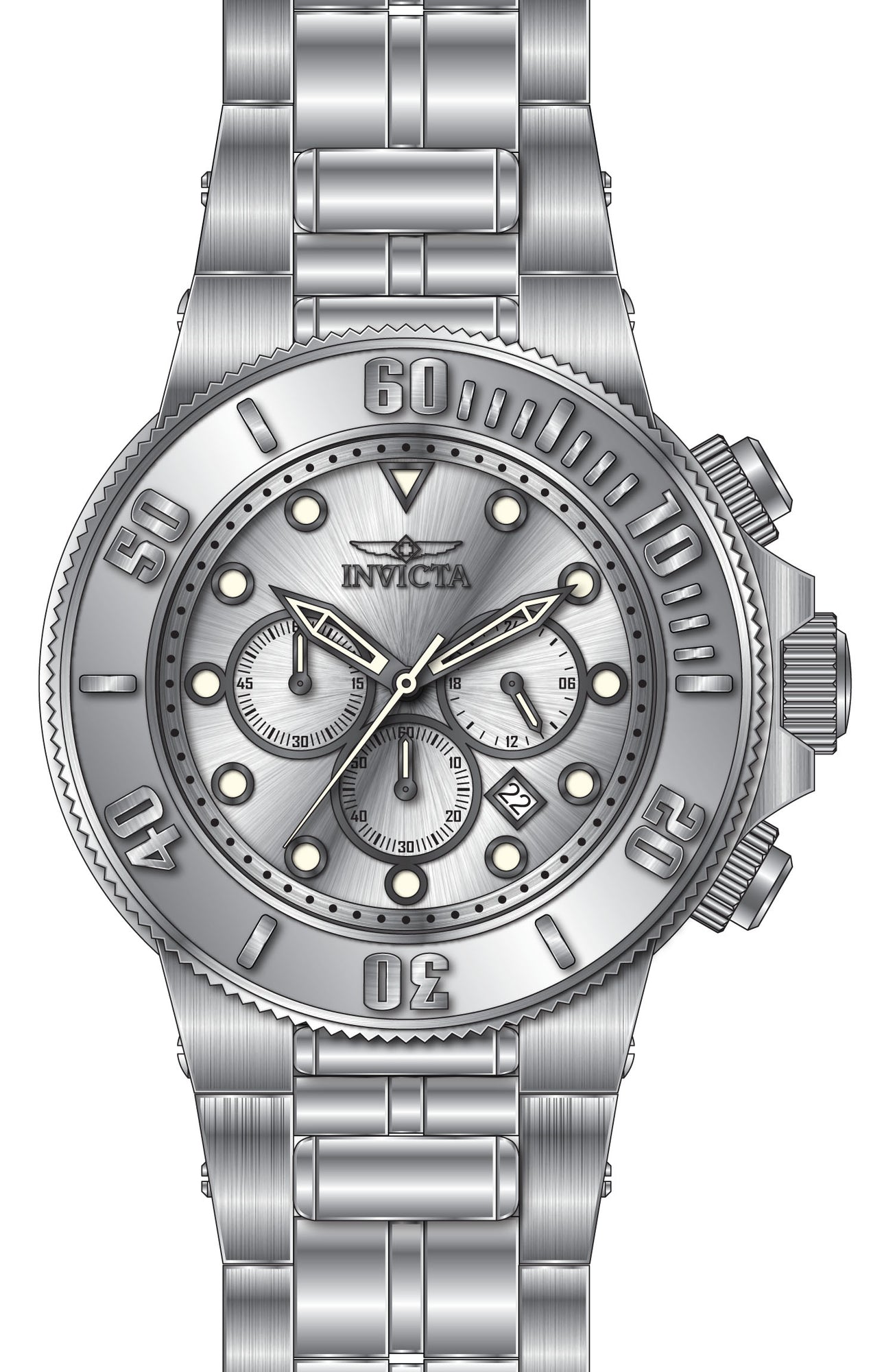 Band Material: Stainless Steel, Band Tone: Steel, Band Width: 30MM, Band Length: 210MM, Crown Type: Push, Case Material: Stainless Steel, Case Tone: Steel, Case Size [mm]: 52.00, Case Back: Solid, Material of Hands: Metal, Color of Hands: Luminous,Gunmetal, Crystal Type: Mineral, Bezel Material: Stainless Steel, Dial Material: Metal, Dial Color: Silver, Dial Pattern: Sun-ray Finish .Purchasing these parts and having a non-authorized repair center open your watch voids all manufacturing warranties. Invicta cannot guarantee the quality standards of an altered timepiece, the standard 3-year limited warranty on Invicta timepieces shall be invalid if the timepiece is serviced at any time by an unauthorized repair center. This includes battery replacements, which must be done at an Invicta authorized repair center in order to maintain the eligibility of the warranty. Please follow the link below to learn more about Invicta's warranty.https://cdn.invictawatch.com/www/files/invicta-warranty-2018.pdf