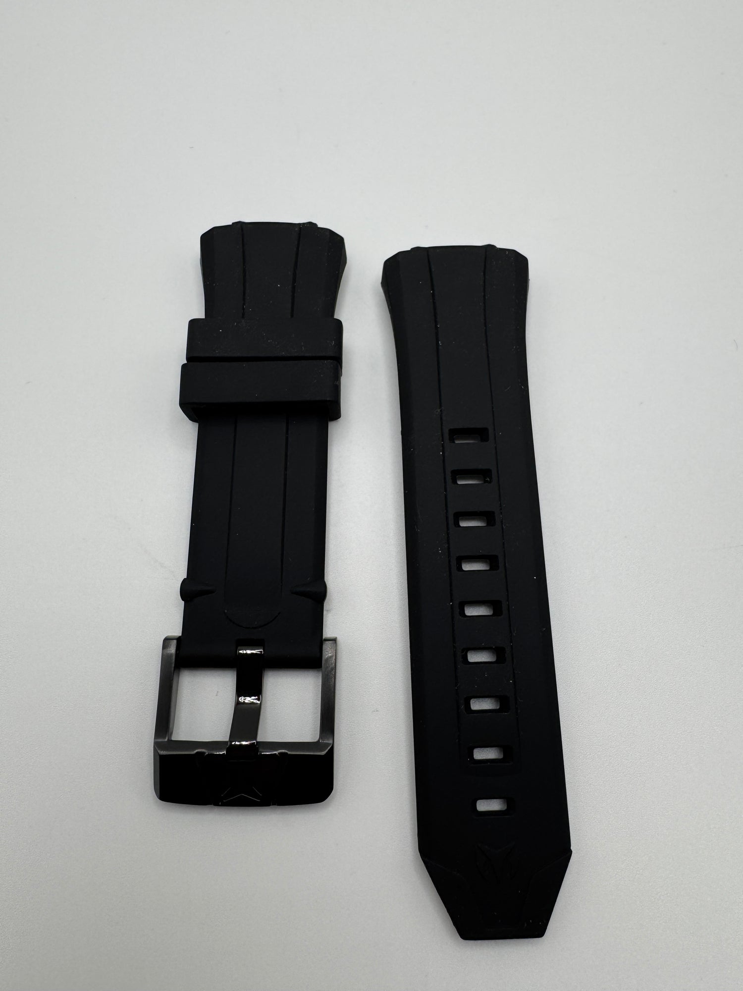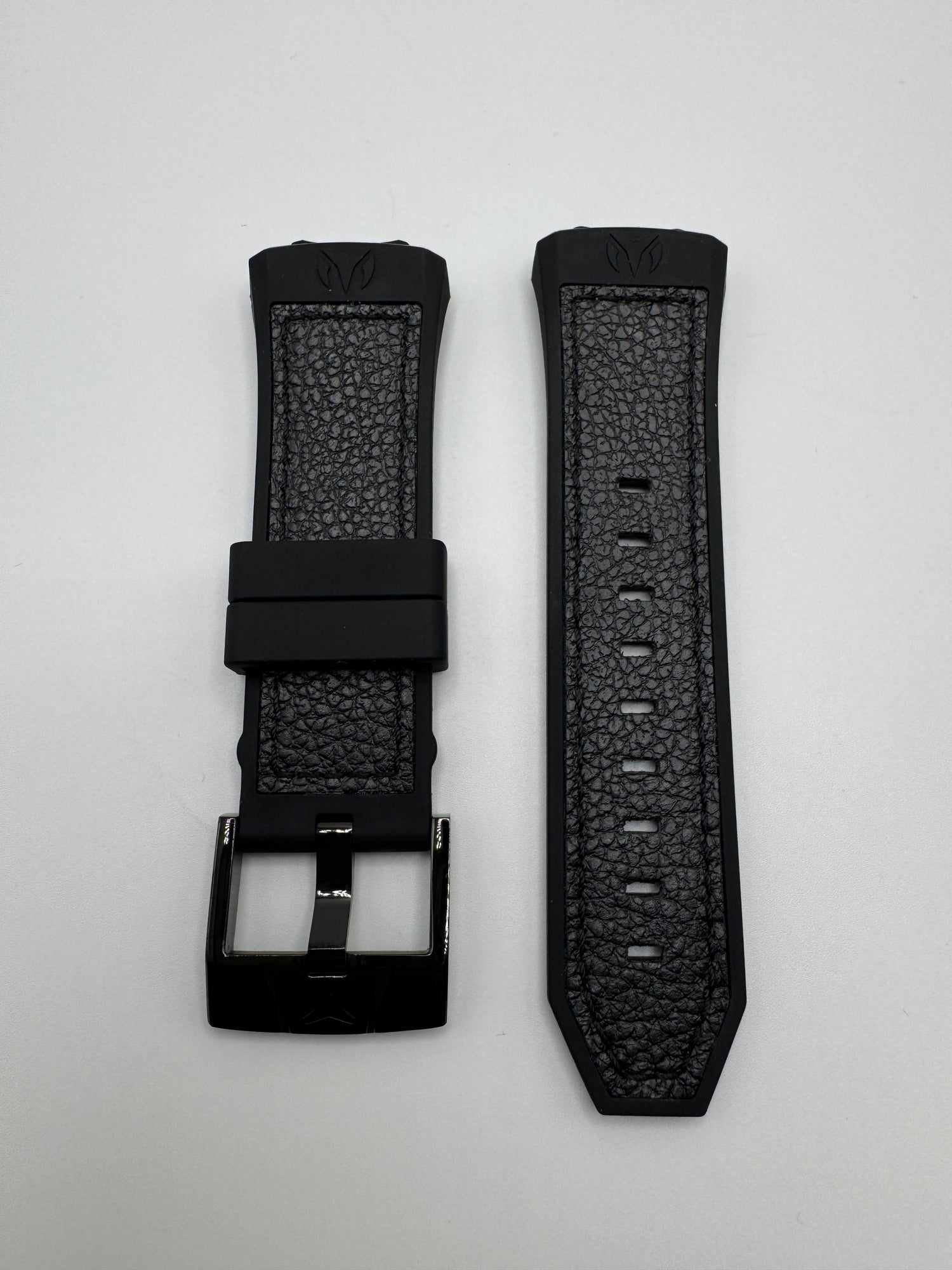 Band Material: Silicone OR Leather / Silicone, Band Tone: Black, Band Size: 29mm, Band Length: 210mm, Clasp Type: Buckle, Clasp Tone: Black Please note that bands do not ship with spring bars or T bars. If you need these parts, please add them to your cart with the corresponding part sku.