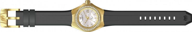 Band Material: Silicone, Band Tone: Black, Band Size: 16mm, Band Length: 203mm, Clasp Type: Regular, Clasp Tone: Gold Please note that bands do not ship with spring bars or T bars. If you need these parts, please add them to your cart with the corresponding part sku.