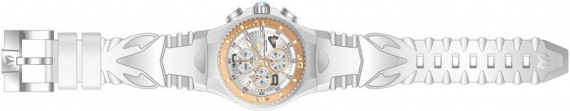 Band Material: Silicone, Band Tone: White, Band Size: 26mm, Band Length: 180mm, Clasp Type: Regular, Clasp Tone: Stainless Steel Please note that bands do not ship with spring bars or T bars. If you need these parts, please add them to your cart with the corresponding part sku.