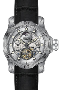 Band Material: Leather, Band Tone: Black, Band Width: 26MM, Band Length: 230MM, Buckle Type: Buckle, Clasp Type: Buckle, Crown Type : Screw Down, Case Material : Stainless Steel, Case Tone : Steel, Case Size [mm] : 53.7, Case Back : Exhibition, Material of Hands : Metal, Color of Hands : Luminous,Gunmetal, Crystal Type : Flame Fusion, Bezel Material : Stainless Steel, Dial Material : Metal,Skeleton, Dial Color : Silver,Gunmetal, Dial Pattern : None .Purchasing these parts and having a non-authorized repair center open your watch voids all manufacturing warranties. Invicta cannot guarantee the quality standards of an altered timepiece, the standard 3-year limited warranty on Invicta timepieces shall be invalid if the timepiece is serviced at any time by an unauthorized repair center. This includes battery replacements, which must be done at an Invicta authorized repair center in order to maintain the eligibility of the warranty. Please follow the link below to learn more about Invicta's warranty.https://cdn.invictawatch.com/www/files/invicta-warranty-2018.pdf