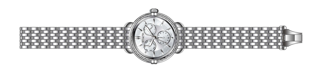 INVICTA Wildflower Lady 38mm Stainless Steel Steel White dial VH68 Quartz , Band Material: Stainless Steel, Band Tone: Steel, Band Size [mm]: 16, Band Length [mm]: 185.5, Buckle Type: Butterfly , Crown Type : Push, Case Material : Stainless Steel, Case Tone : Steel, Case Size (mm) : 38, Case Back : Solid, Material of Hands : Metal, Color of Hands : Silver, Crystal Type : Flame Fusion, Bezel Material : Stainless Steel,Cable, Dial Material : Metal,Mother of Pearl, Dial Color : White .Purchasing these parts and having a non-authorized repair center open your watch voids all manufacturing warranties. Invicta cannot guarantee the quality standards of an altered timepiece, the standard 3-year limited warranty on Invicta timepieces shall be invalid if the timepiece is serviced at any time by an unauthorized repair center. This includes battery replacements, which must be done at an Invicta authorized repair center in order to maintain the eligibility of the warranty. Please follow the link below to learn more about Invicta's warranty.https://cdn.invictawatch.com/www/files/invicta-warranty-2018.pdf
