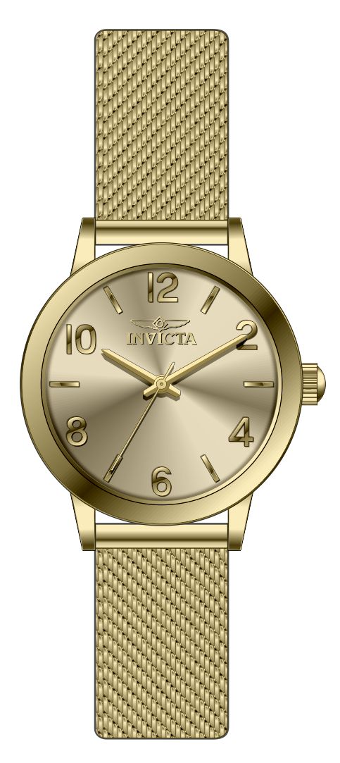 Band Material: Stainless Steel, Band Tone: Gold, Band Width: 16MM, Band Length: 190MM, Crown Type: Push, Case Material: Stainless Steel, Case Tone: Gold, Case Size [mm]: 34, Crystal Type: Mineral, Dial Material: Brass, Dial Color: Gold .Purchasing these parts and having a non-authorized repair center open your watch voids all manufacturing warranties. Invicta cannot guarantee the quality standards of an altered timepiece, the standard 3-year limited warranty on Invicta timepieces shall be invalid if the timepiece is serviced at any time by an unauthorized repair center. This includes battery replacements, which must be done at an Invicta authorized repair center in order to maintain the eligibility of the warranty. Please follow the link below to learn more about Invicta's warranty.https://cdn.invictawatch.com/www/files/invicta-warranty-2018.pdf