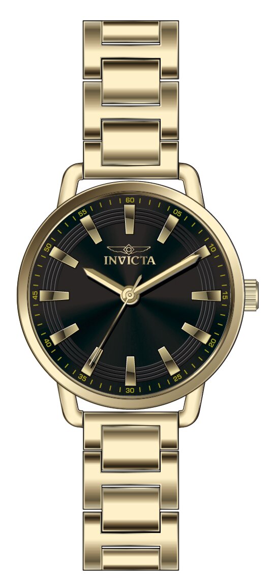 Band Material: Stainless Steel, Band Tone: Gold, Band Width: 16MM, Band Length: 165MM, Crown Type: Push, Case Material: Stainless Steel, Case Tone: Gold, Case Size [mm]: 38, Crystal Type: Flame Fusion, Dial Material: Brass, Dial Color: Black .Purchasing these parts and having a non-authorized repair center open your watch voids all manufacturing warranties. Invicta cannot guarantee the quality standards of an altered timepiece, the standard 3-year limited warranty on Invicta timepieces shall be invalid if the timepiece is serviced at any time by an unauthorized repair center. This includes battery replacements, which must be done at an Invicta authorized repair center in order to maintain the eligibility of the warranty. Please follow the link below to learn more about Invicta's warranty.https://cdn.invictawatch.com/www/files/invicta-warranty-2018.pdf