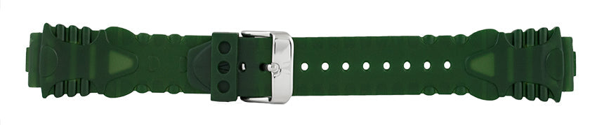 Band Material: Gel, Band Tone: Forest Green, Band Size: 16 mm, Band Length: 180mm, Clasp Type: Buckle, Clasp Tone: Stainless Steel Please note that bands do not ship with spring bars or T bars. If you need these parts, please add them to your cart with the corresponding part sku.