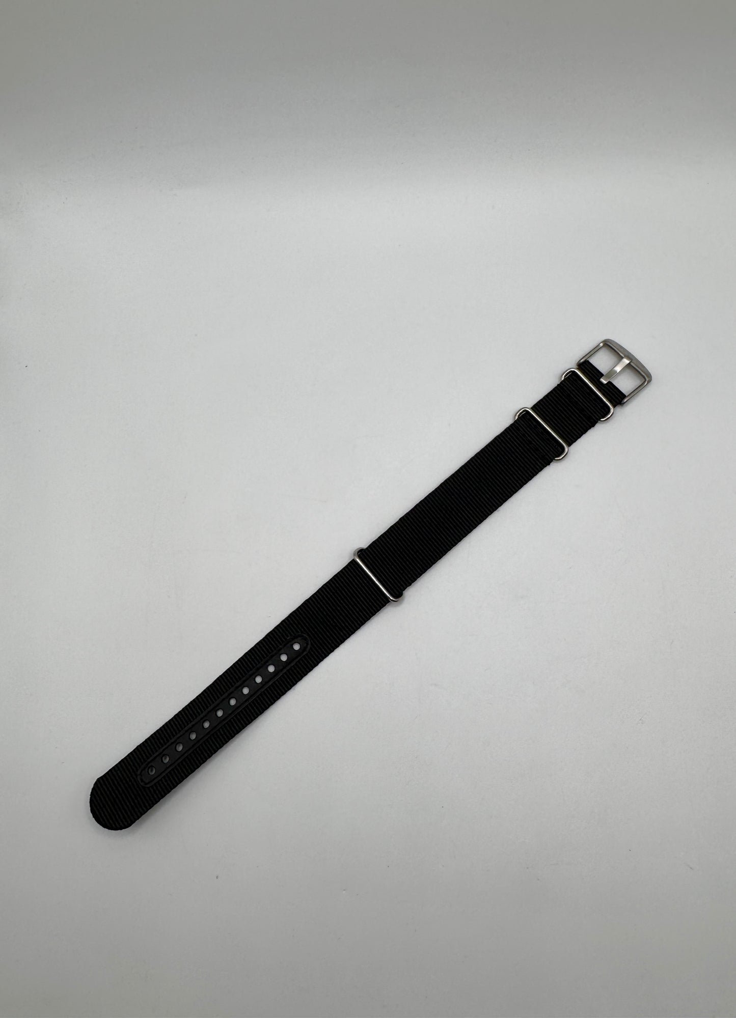 Band Material: Nylon, Band Tone: Black, Band Size [mm]: 22, Band Length [mm]: 260, Buckle Type: Buckle. Buckle Color: Stainless Steel. Please note that bands do not ship with spring bars or T bars. If you need these parts, please add them to your cart with the corresponding part sku.