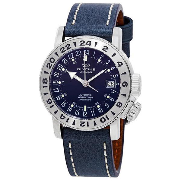 Band for Glycine Airman GL0219, Band Material: Leather Band Color: Blue Band Width (mm): 20 Band Length (mm): 200 Buckle Type: Regular